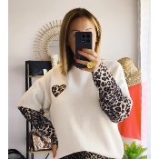 PULL SAMY LEOPARD BLANC
