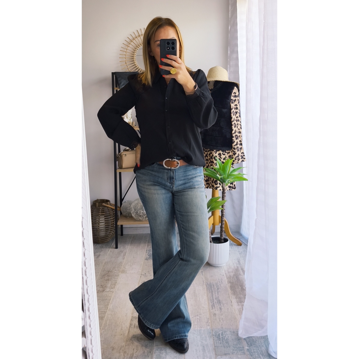 Chemise noir avec dentelles, Chique et confortable, idéale pour la mi-saison.