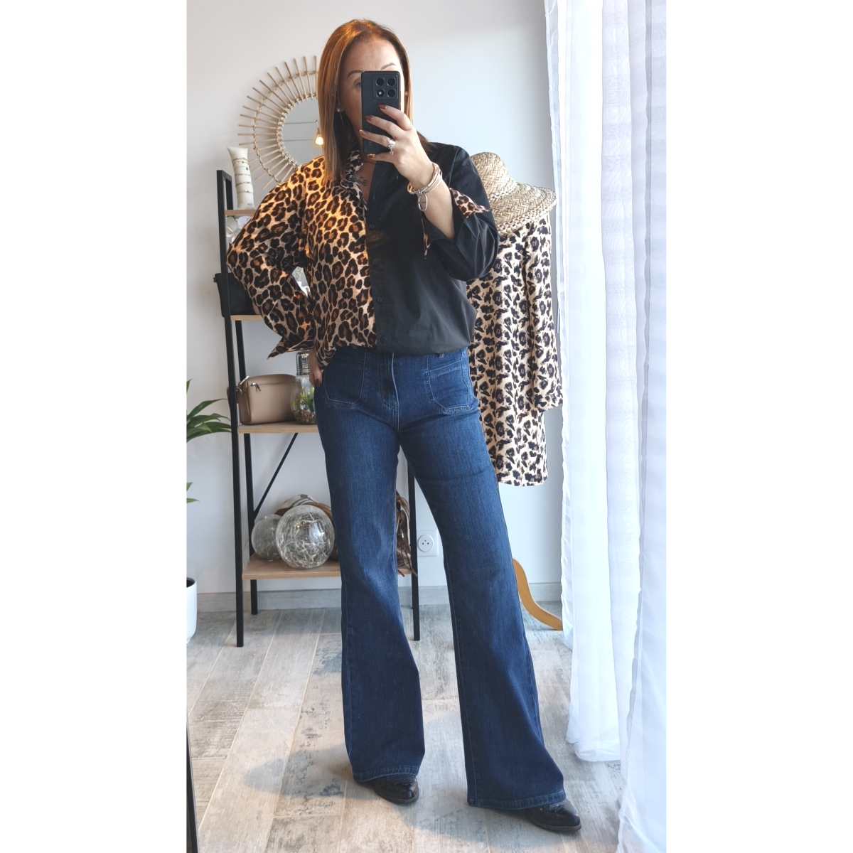 Chemise noir avec léopard, Chique et confortable, idéale pour la mi-saison.