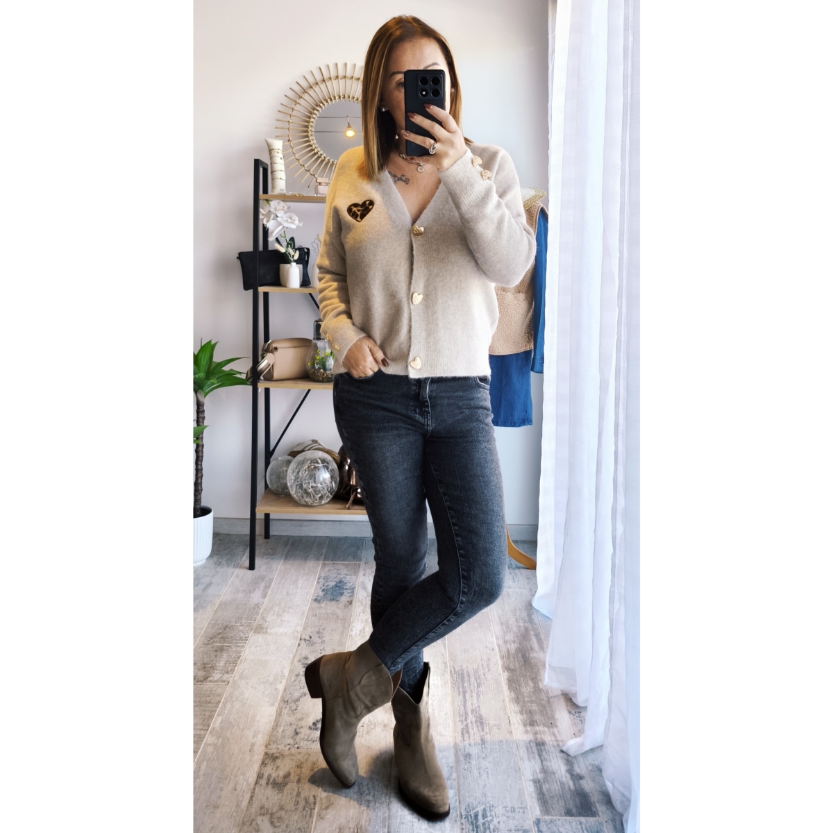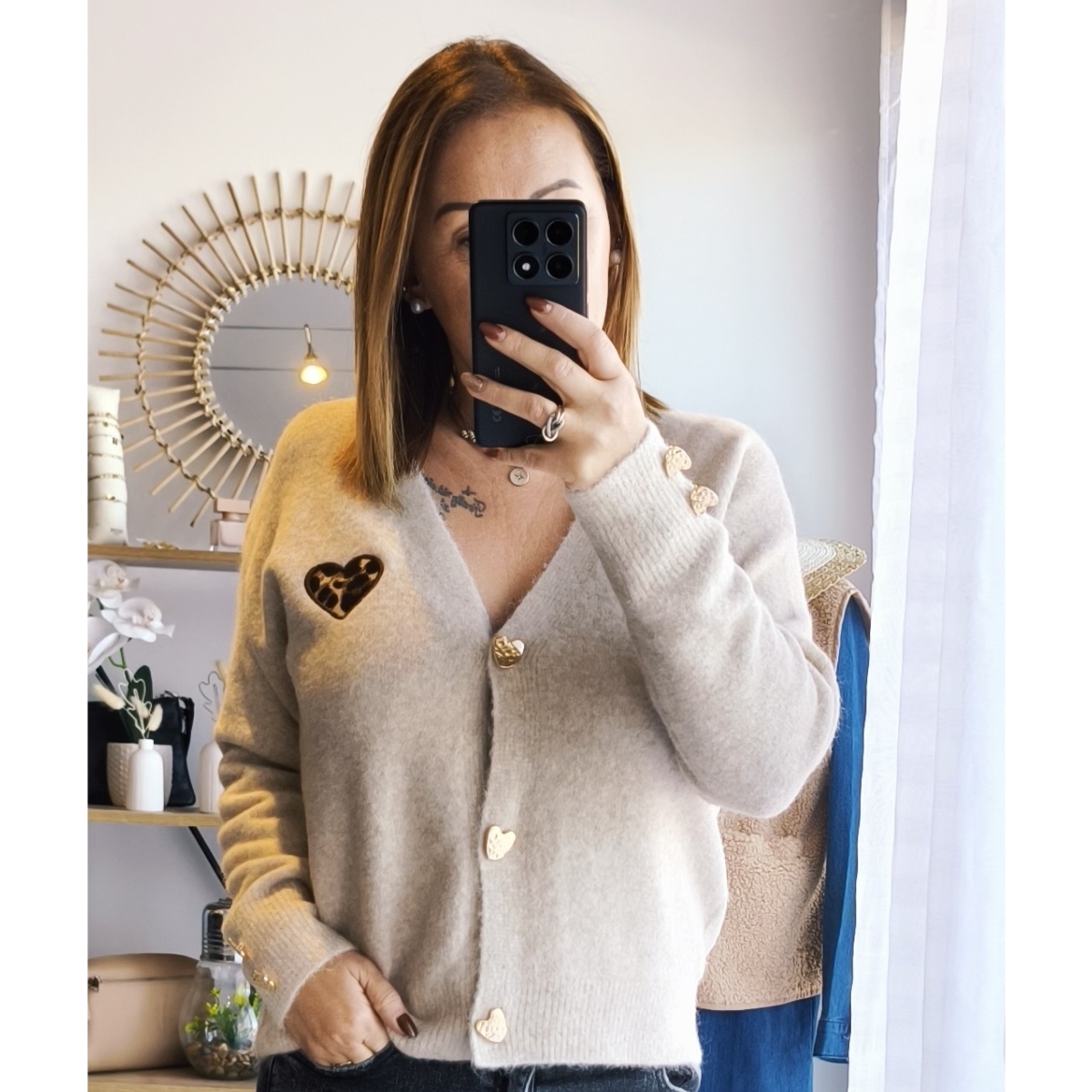 Gilet beige trés doux . Modéle parfait pour compléter notre garde-robe.