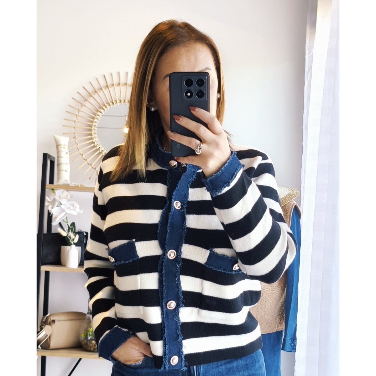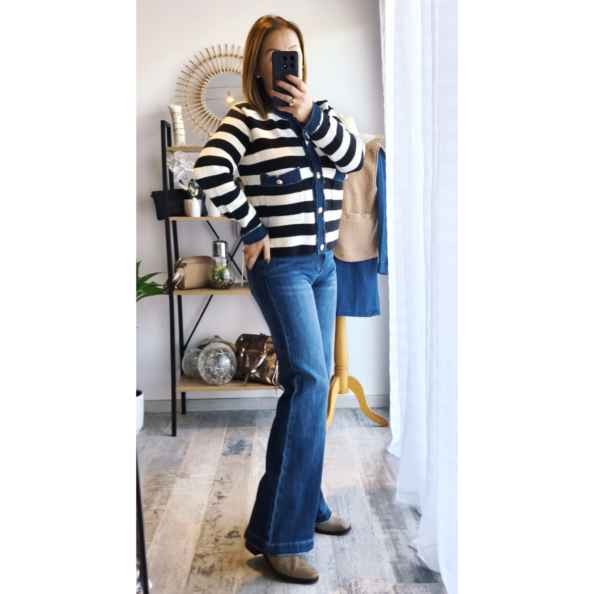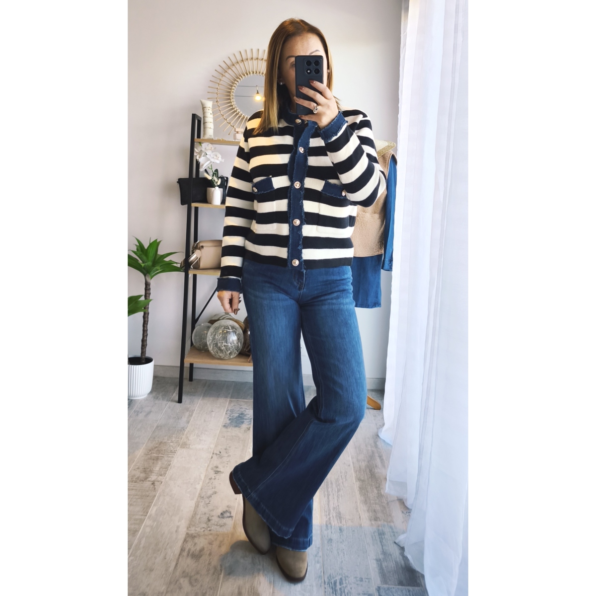 Gilet blanc et jeans. Modéle parfait pour compléter notre garde-robe.