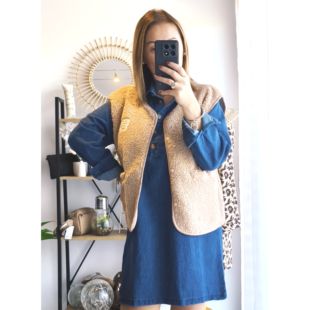 Gilet sans manches beige. Modéle parfait pour compléter notre garde-robe.