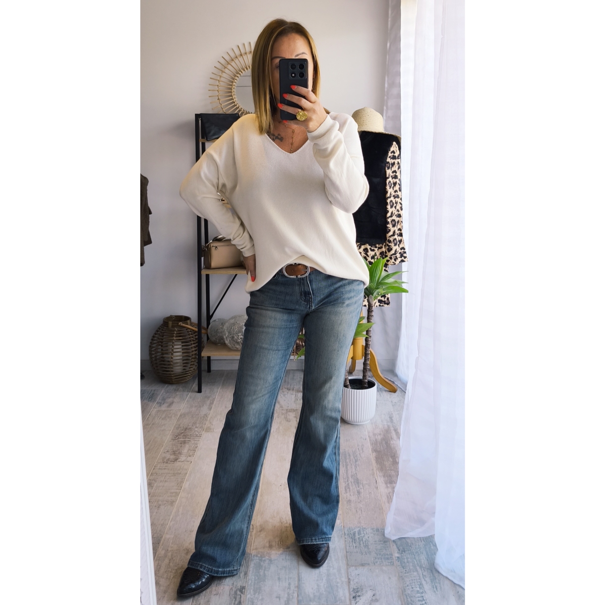 Jeans taille haute . Modéle parfait pour compléter notre garde-robe. Porter ce jeans avec une paire de bascket et pull pour un look classique chic!