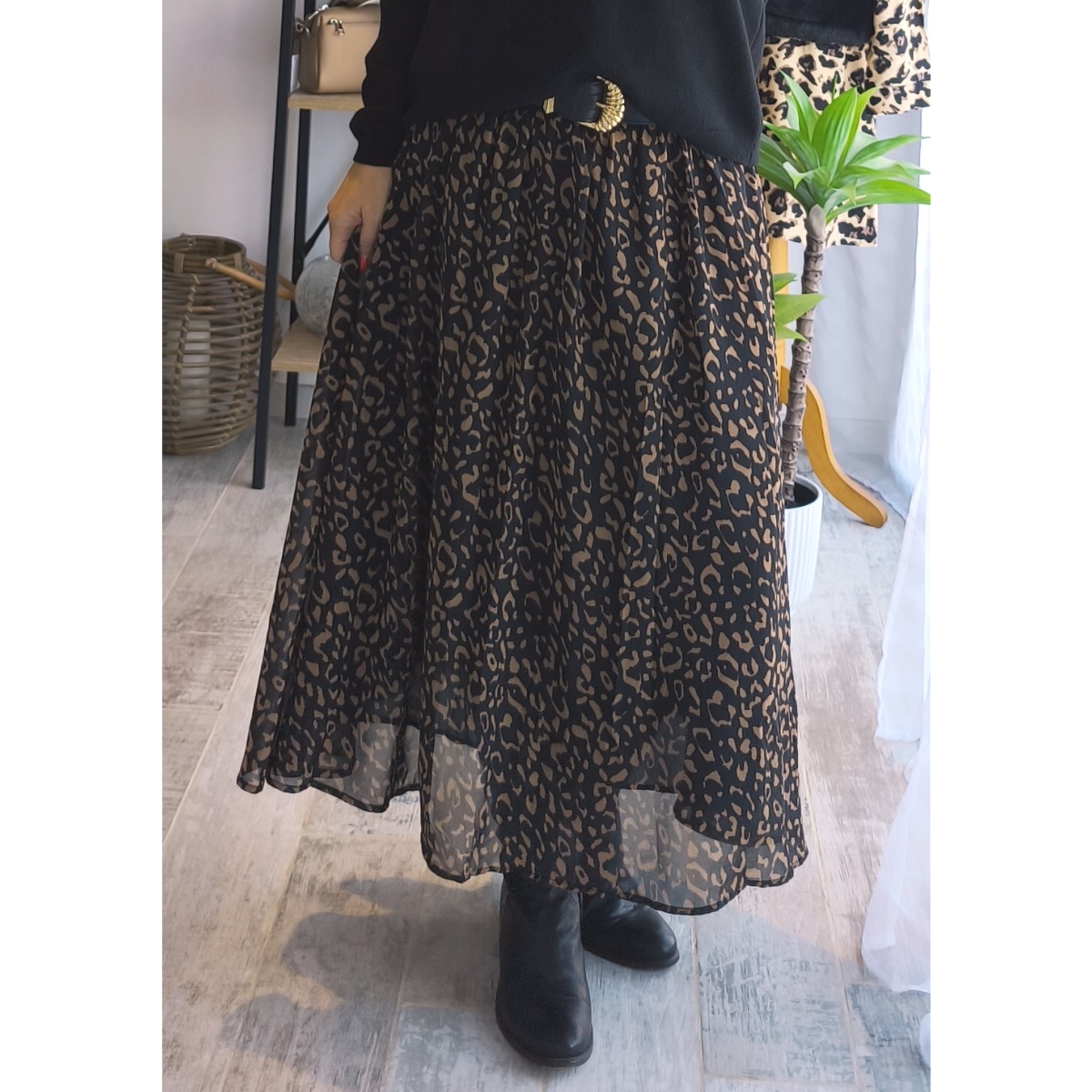 Jupe fuide élastique à la taille doublée, taille haute. Modéle parfait pour compléter notre garde-robe.