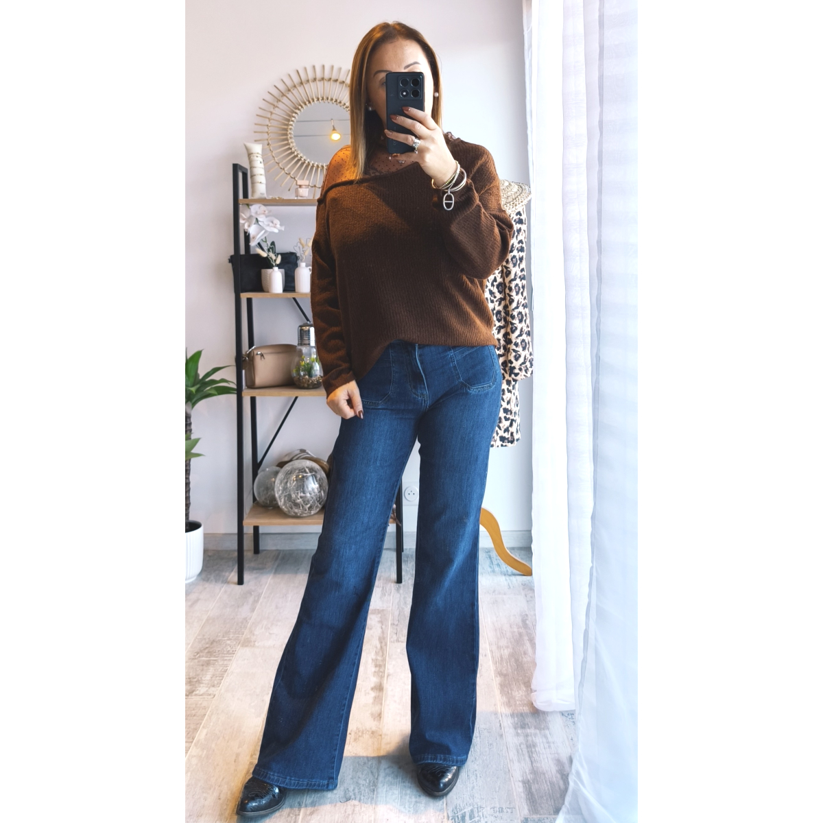 Pull chocolat avec dentelle. Modéle parfait pour compléter notre garde-robe.